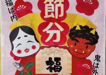 今年の恵方は南南東、恵方観音は笠寺観音ですね。 「鬼は外! 福は内!」無病息災を願って、豆まきをしました。 鬼のお面で、ポーズを決めてくださいましたよ。 今日のランチには、ちらし寿司をご用意…