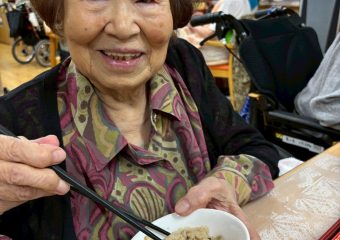 昼食はいつもたくさんの種類の手作りおかずが少量ずつと、施設の厨房で炊かれた温かいご飯と味噌汁。