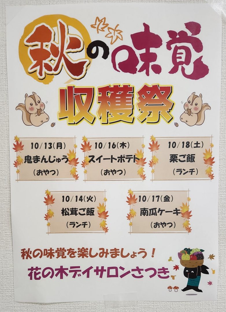 花の木デイサロンさつきでは、『秋の味覚 収穫祭』を開催しました。