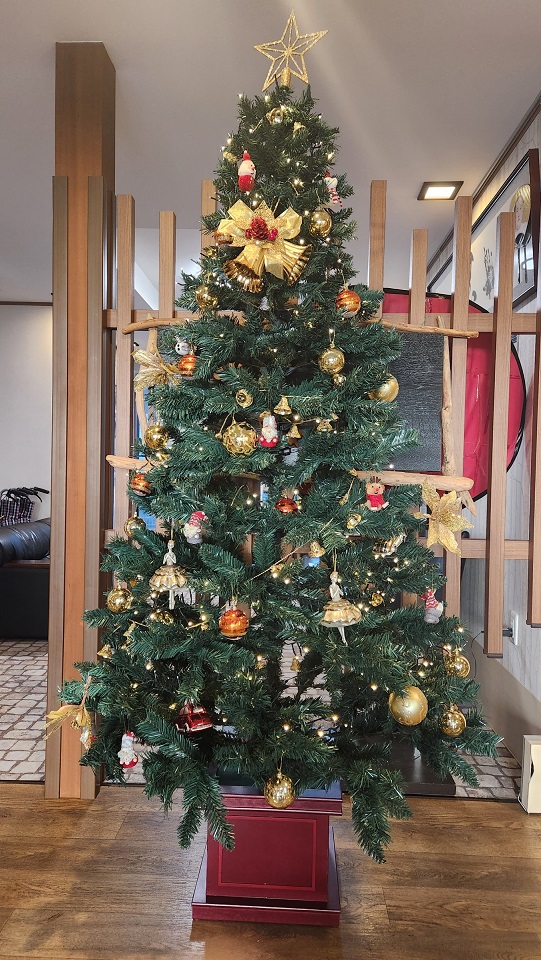 よっこいしょ・花の木 蔵之助では、天井に届きそうなほどの大きな大きなクリスマスツリーを飾りました。