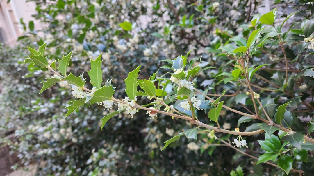 蔵之助のヒイラギに、可愛らしいお花が付いていました。見た目もかわいいのですが、とっても良い香りもします。