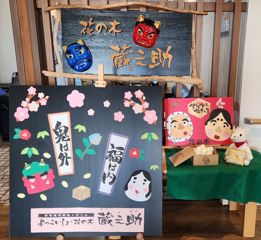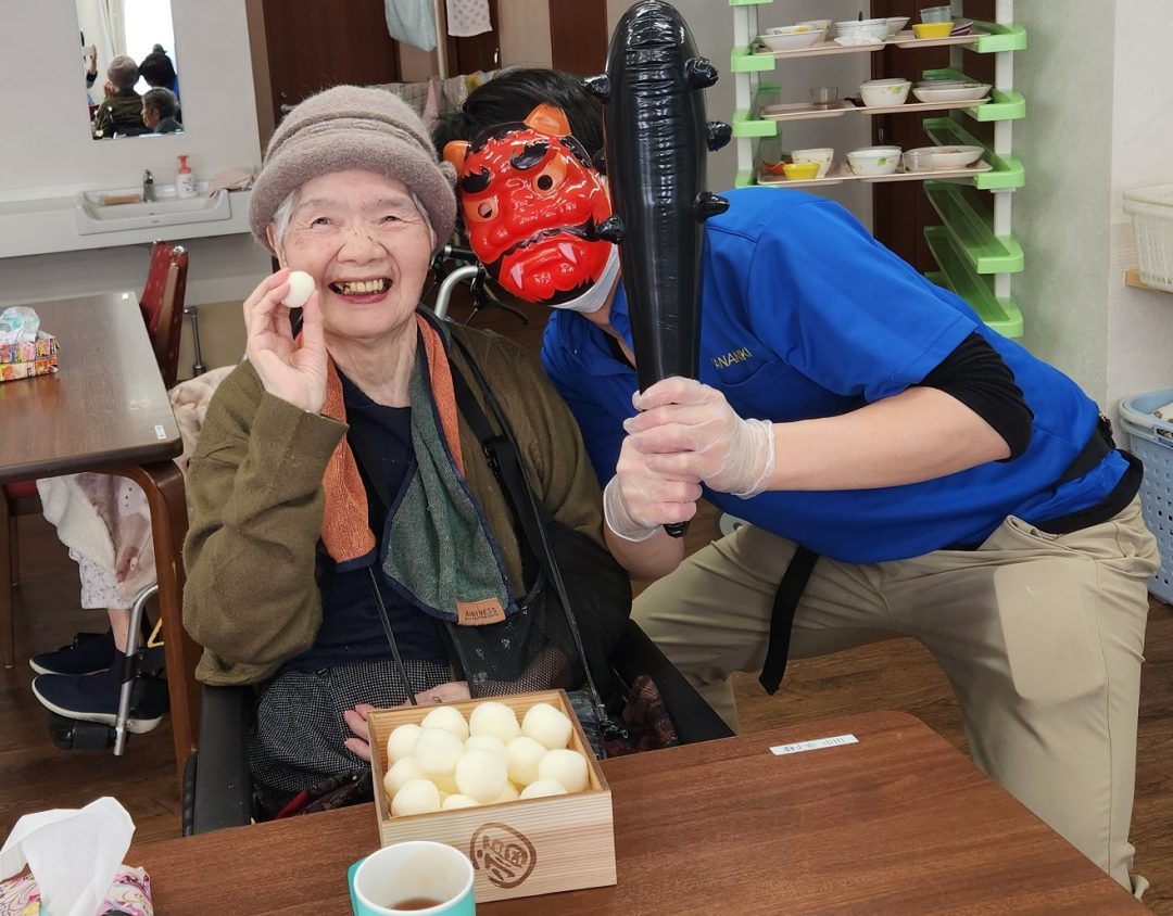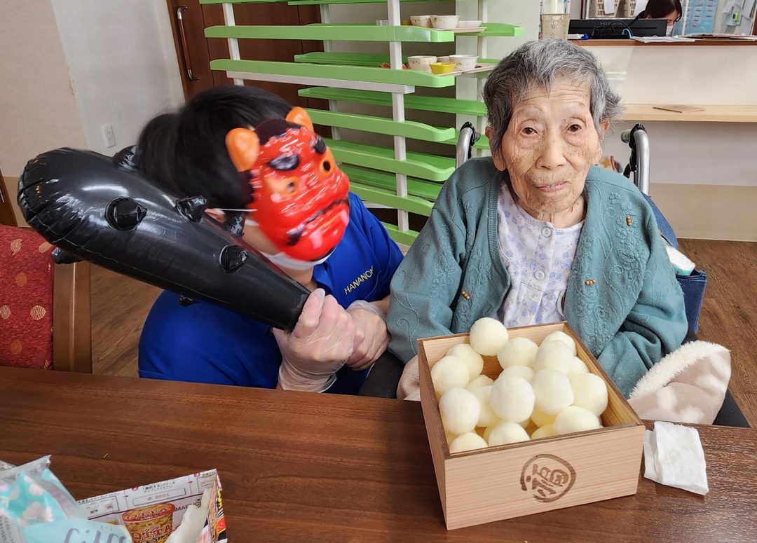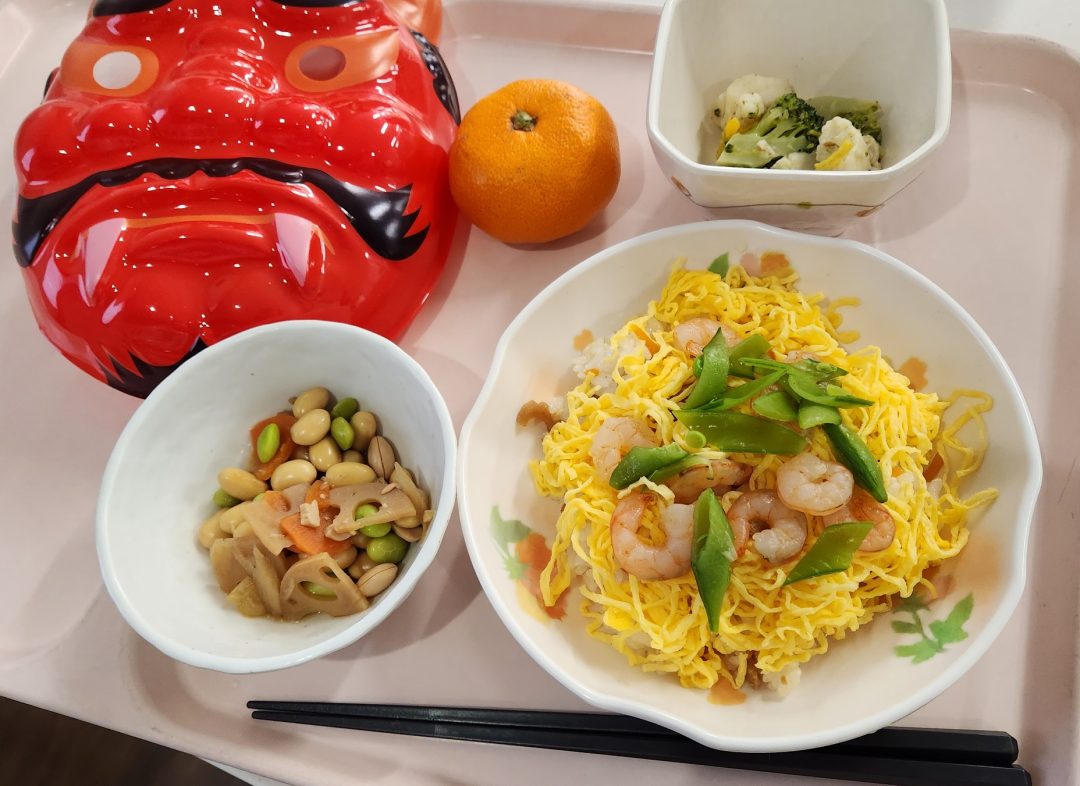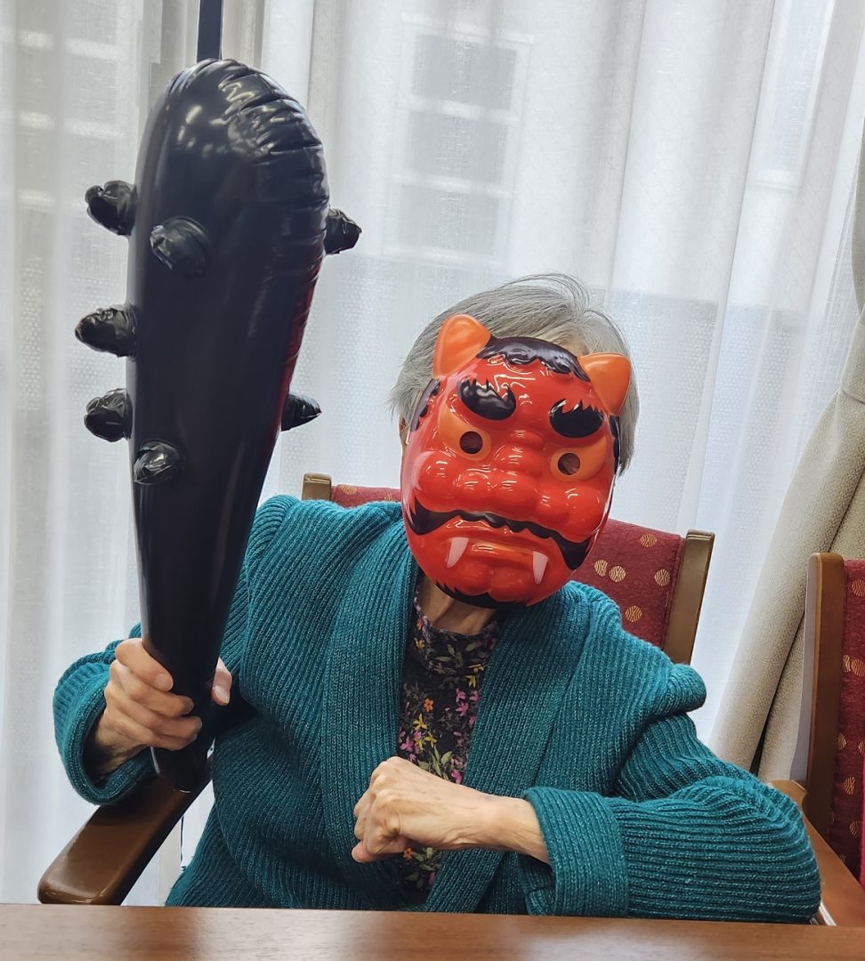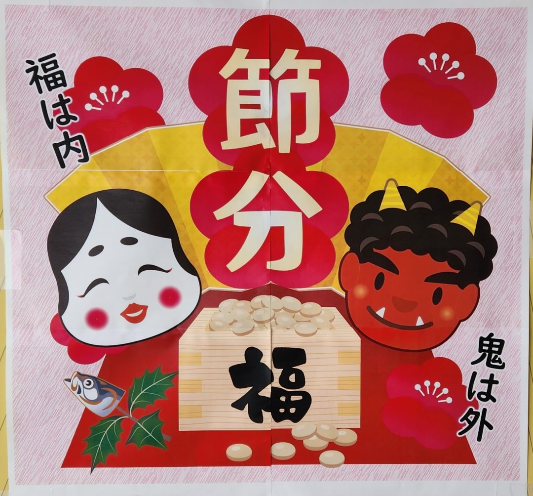 「鬼は外! 福は内!」無病息災を願って、豆まきをしました。